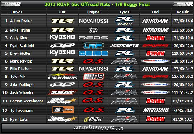 Congratulazioni al TLR America per gli ottimi risultati ragiunti nella cat truggy e nella cat buggy schierando un flotta di TLR 8ight nelle finali! Complimenti ad Adam Drake che ha portato la sua 8ight 3.0 sul gradino più alto del prestigiosissimo podio