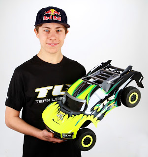 Un altro nuovo arrivo che si va ad inserire incredibilmente (poi scoprirete perchè) nella scuderia del TLR!! Si tratta di un top driver ma di buggy scala 1:1 visto che si tratta di Mitchell Dejong pilota ufficiale RedBull/Traxxas, pluricampione malgrado la sua giovanissima età, 15 anni!! Nel suo tempo libero di pilota PRO si dedicava alle corse degli short course rc ma non con un Traxxas Slash come sarebbe facile intuire visto che insieme a Redbull la sua macchina sfoggia un gigantesco logo Traxxas ma bensì con SCTE Ten, 22 e il big scale Losi Five tutti prodotti marchiati Losi!! Detto fatto: premiata la sua passione, quando i vertici Losi ne sono venuti a conoscenza l'hanno immediatamente messo sotto contratto, certamente non gratuitamente ! Nel video linkato sotto potrete salire a bordo della macchina di Mitchell in questa categoria ormai seguitissima negli states!