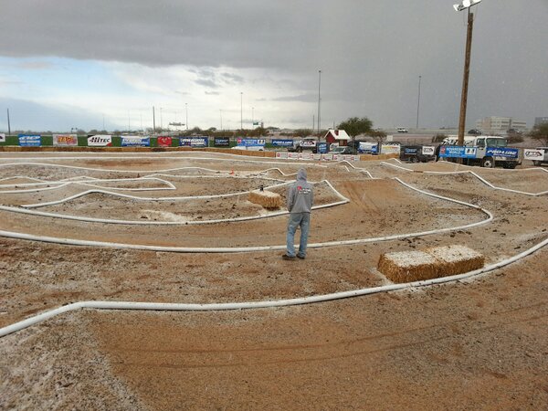 A Phoenix i ragazzi del Dirt stanno dormendo visto che in questo momento sono passate da poco le 04:30 del mattino...tra poco la sveglia sperando in una giornata piena di sole, come di consueto per quelle zone!!! In allegato alcune foto tra cui la tempesta di grandine vista dall'auto presso Phoenix, il pitmat TLR totalmente coperto di grandine grossa come palline da golf , Mike Truhe che si sta rilassando in hotel giocando con il suo tablet a motocross e la 3.0 di Pend pronta per l'uragano Dirt!!!